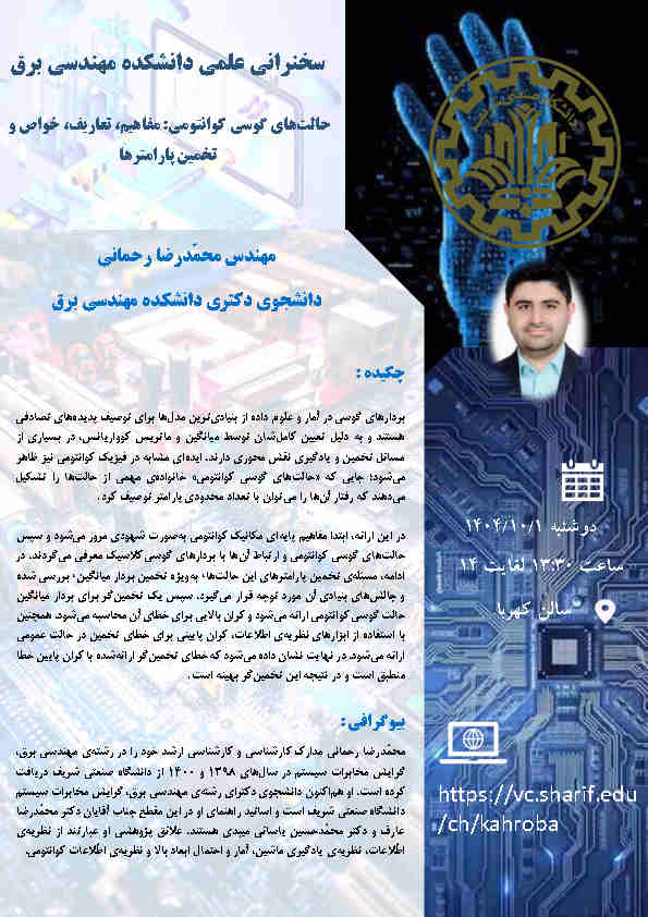 سخنرانی: حالت های گوسی کوانتومی: مفاهیم، تعاریف، خواص و تخمین پارامترها