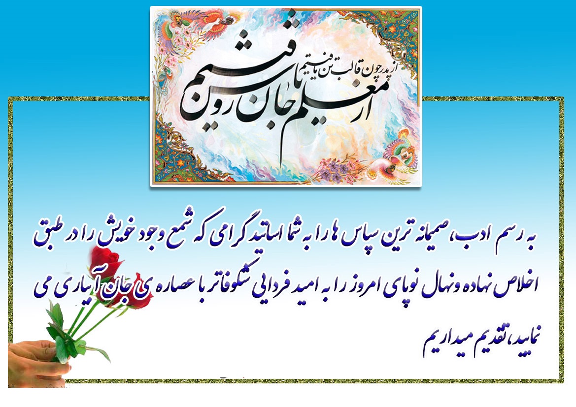 گرامیداشت معلمی هنر است، عشقی است آسمانی آنچه سبب شود که نیستی صورت هستی به خود گیرد، آفرینش و خلاقیت است و استادان خلاق و آفرینشگر هستند. ضمن گرامیداشت سالگرد شهادت فیلسوف عالی مقام، استاد...