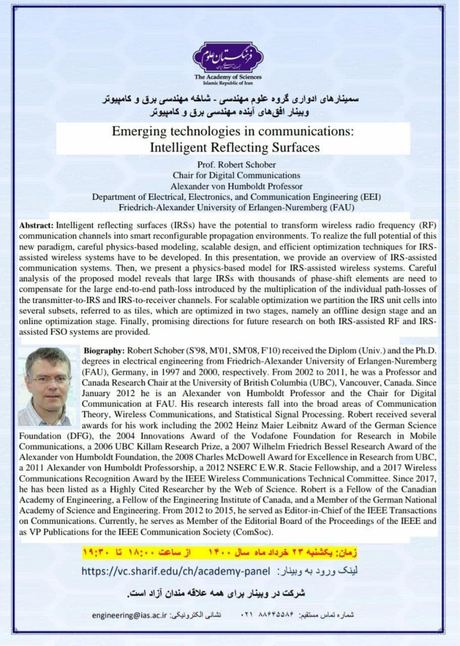 Emerging technologies in communications: Intelligent Reflecting Surfaces Prof. Robert Schober Chair for Digital Communications Alexander von Humboldt Professor