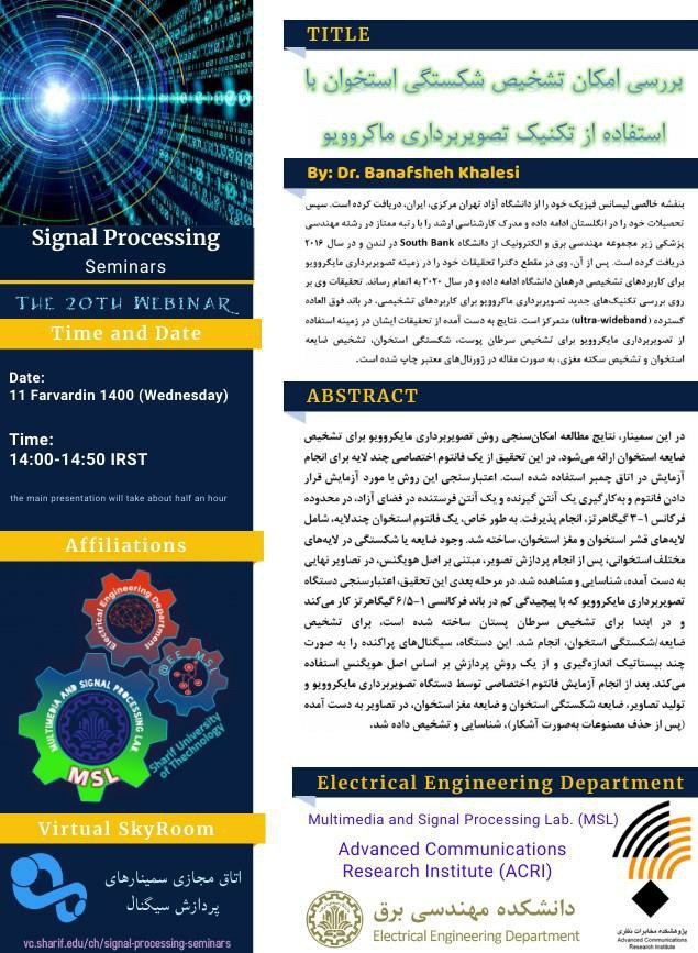 وبینار “بررسی امکان تشخیص شکستگی استخوان با استفاده از تکنیک تصویربرداری مایکروویو” 🎙ارائه توسط سرکار خانم دکتر بنفشه خالصی
