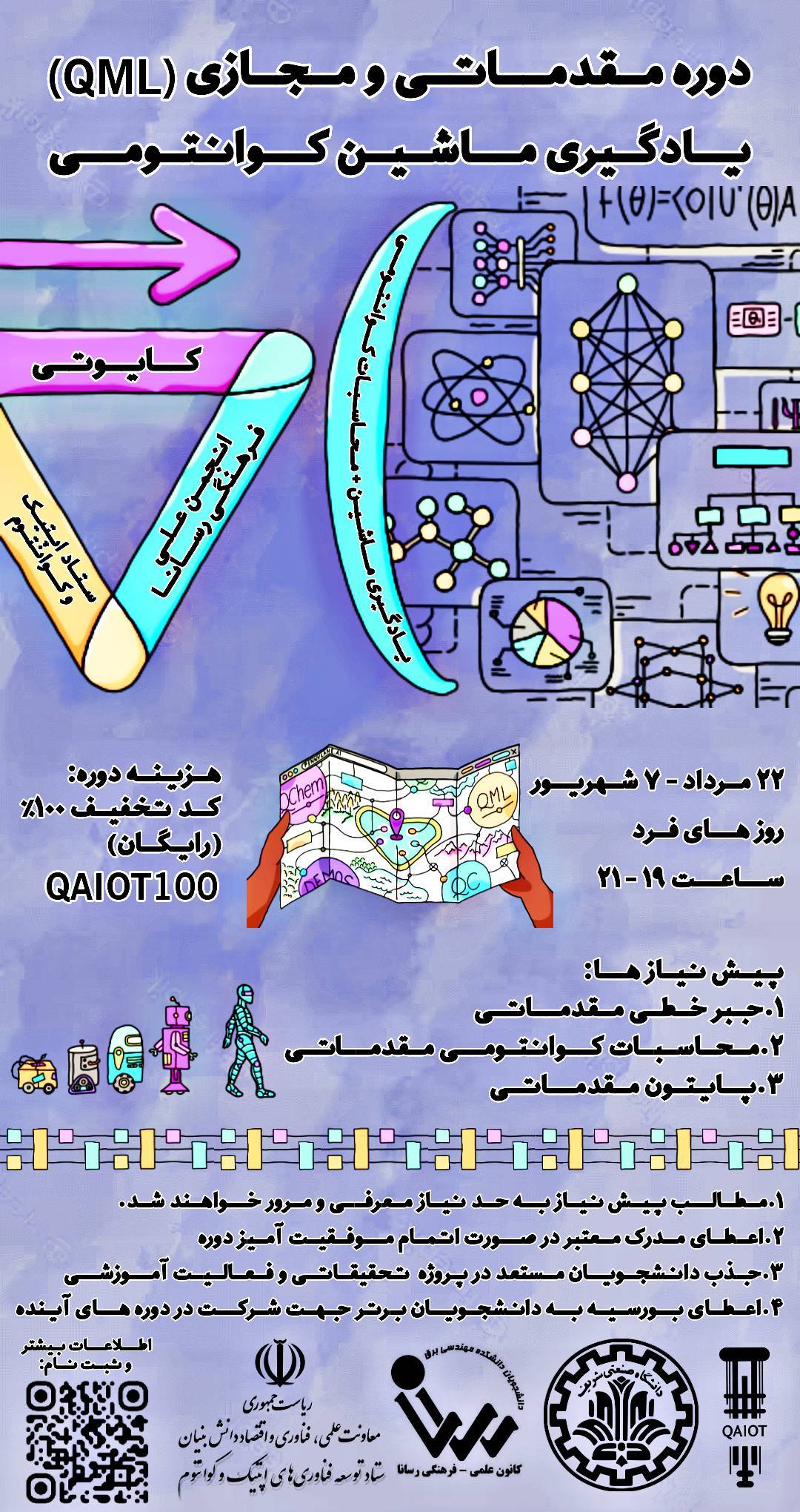دوره مقدماتی: یادگیری ماشین کوانتومی (QML) 🔰ثبت نام *تکمیل ظرفیت* دوره مقدماتی: یادگیری ماشین کوانتومی (QML)🔰 🏢برگزارکنندگان: گروه کایوتی با همکاری انجمن علمی فرهنگی رسانا دانشگاه صنعتی شریف و ستاد...
