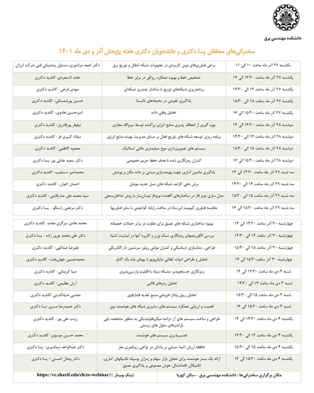 برنامه سخنرانی پژوهشگران پسادکتری و دانشجویان دکتری در هفته پژوهش