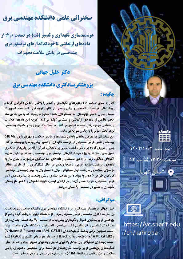سخنرانی: هوشمندسازی نگهداری و تعمیر ( نت) در صنعت از داده های ارتعاشی تا خود کد گذارهای ترنسفورمری چند حسی در پایش سلامت تجهیزات