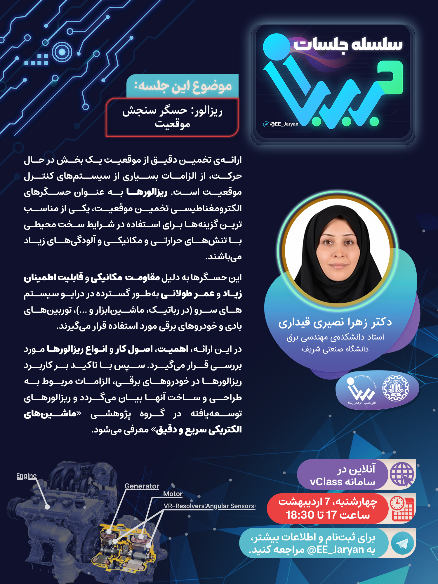 سلسله جلسات جریان این هفته با یکی دیگر از جلسات آنلاین از سلسله جلسات جریان ، میزبان دكتر زهرا نصيري قيداري هستیم. از شما دعوت میکنیم با ما همراه باشید. چكيده ارائه: ریزالور: حسگر سنجش موقعیت...