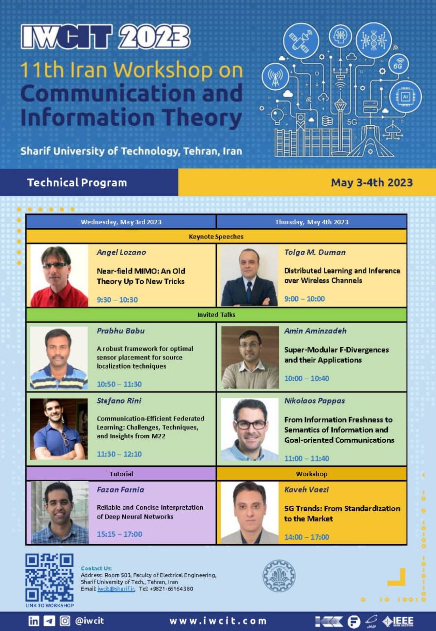 IWCIT 2023 11th Iran Workshop on Communication and Information Theory May 3-4th 2023 (1402/02/13-14) Sharif University of Technology Register at www.iwcit.com For more information: iwcit.com...