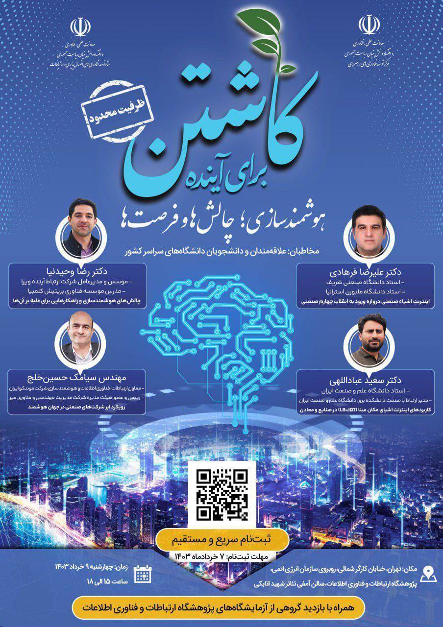 سخنرانی تحت عنوان: «اینترنت اشیاء صنعتی دروازه ورود به انقلاب چهارم صنعتی» توسط جناب آقای دکتر علیرضا فرهادی در برگزاری رویداد «کاشتن برای آینده» با محوریت «هوشمندسازی؛ چالشها و فرصتها»؛...
