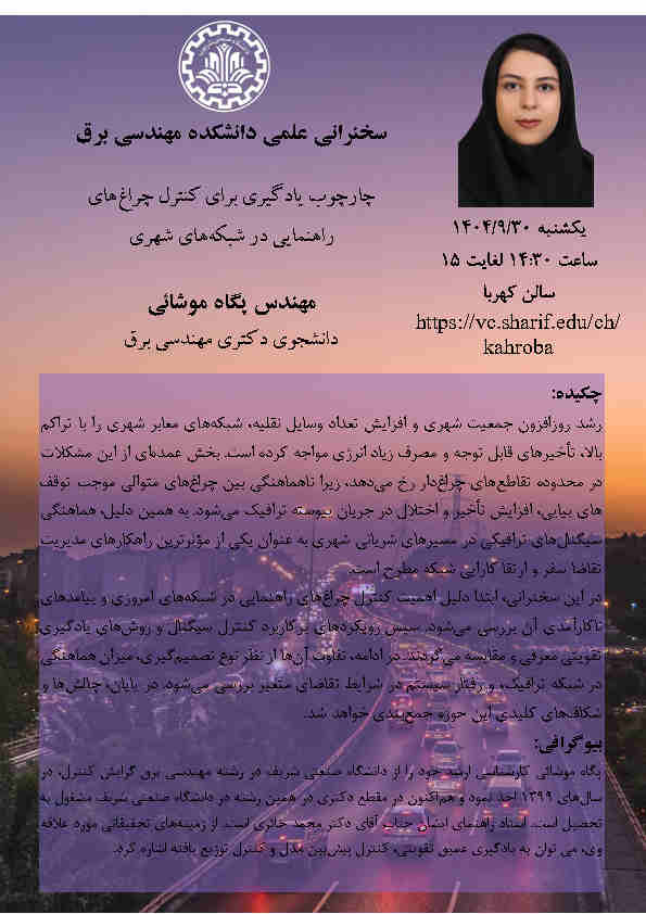 سخنرانی: چار چوب یادگیری برای کنترل چراغ های راهنمایی در شبکه های شهری