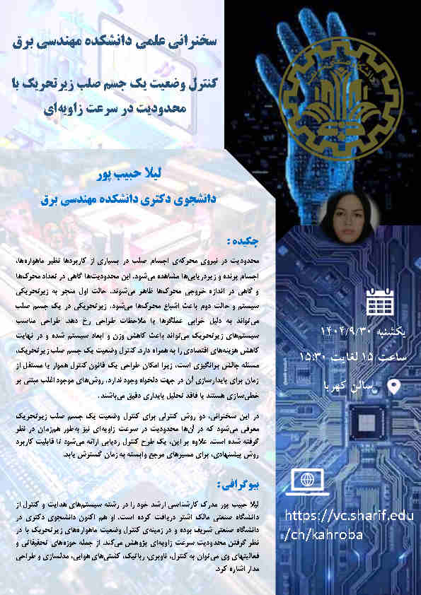 سخنرانی: کنترل وضعیت یک جسم صلب زیر تحریک با محدودیت در سرعت زاویه ای