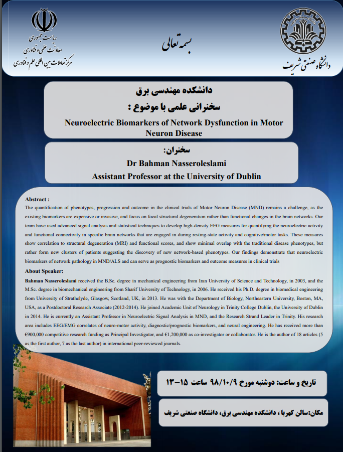 با موضوع : Neuroelectric Biomarkers of Network Dysfunction in Motor Neuron Disease